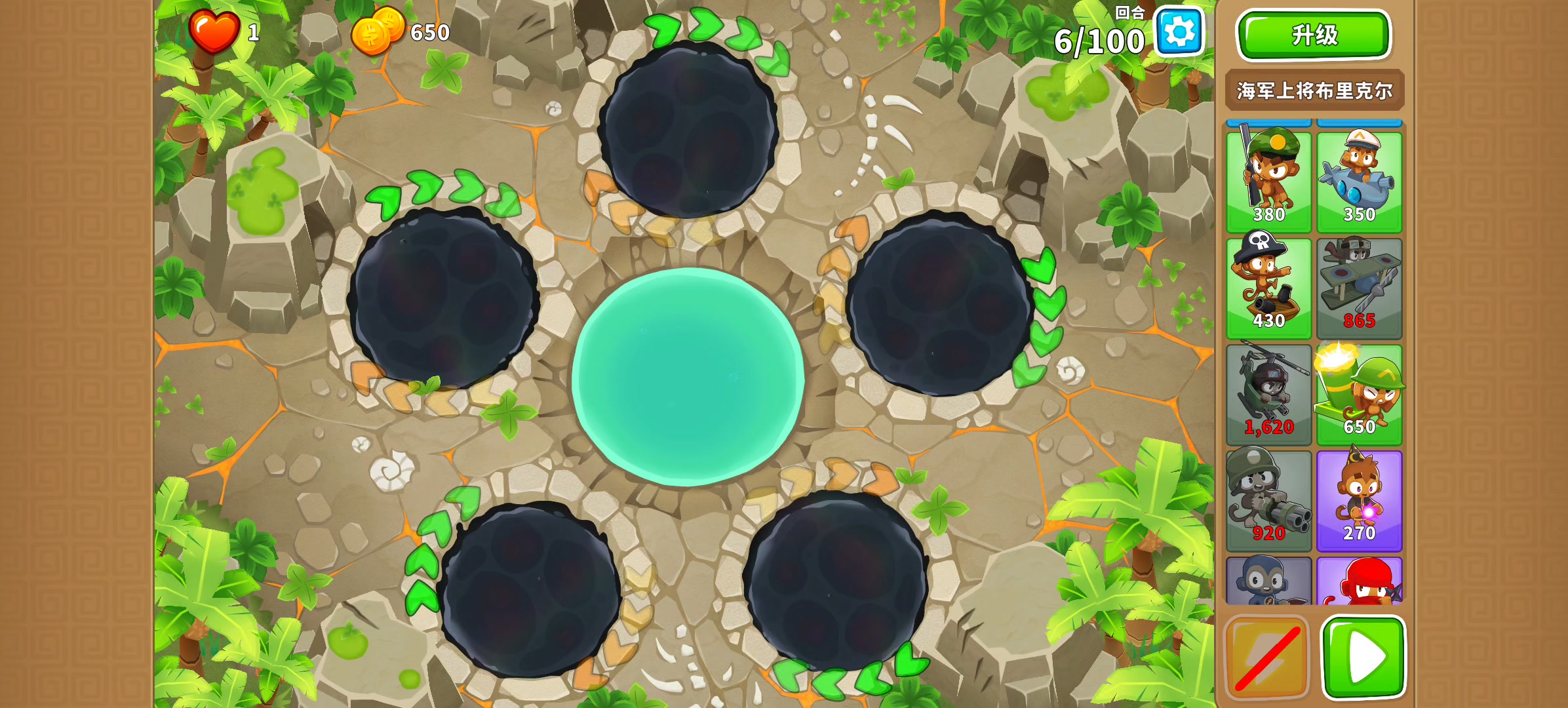 找个位置放050海盗猴,等飞艇出来4-5个放技能,然后卖掉,再放050海盗猴,在放技能。#气球塔防6 #高级挑战