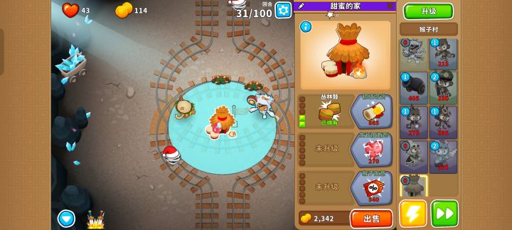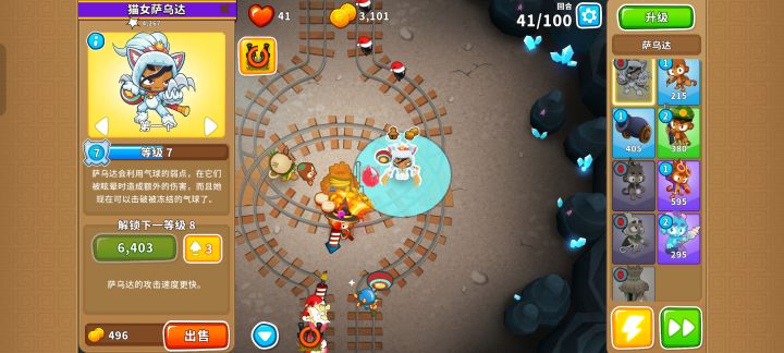 这关反而不难,只不过开局需要一些细节。无需知识,力量和双金!开局在两个角落里放下英雄萨乌达和110德鲁伊,目标强力。第21回合需要手动将萨乌达升到4级,钱够了后赶紧将德鲁伊升到130,目标改回第一,就能度过前期。然后来个200猴子村辅助它俩,第40回合需要用032法师猴对付MOAB,等到爆开陶瓷气球猴再用跃剑攻击技能就行!之后可直接把猴子村升到204,德鲁伊升到140赚钱,并在中间位置放下4