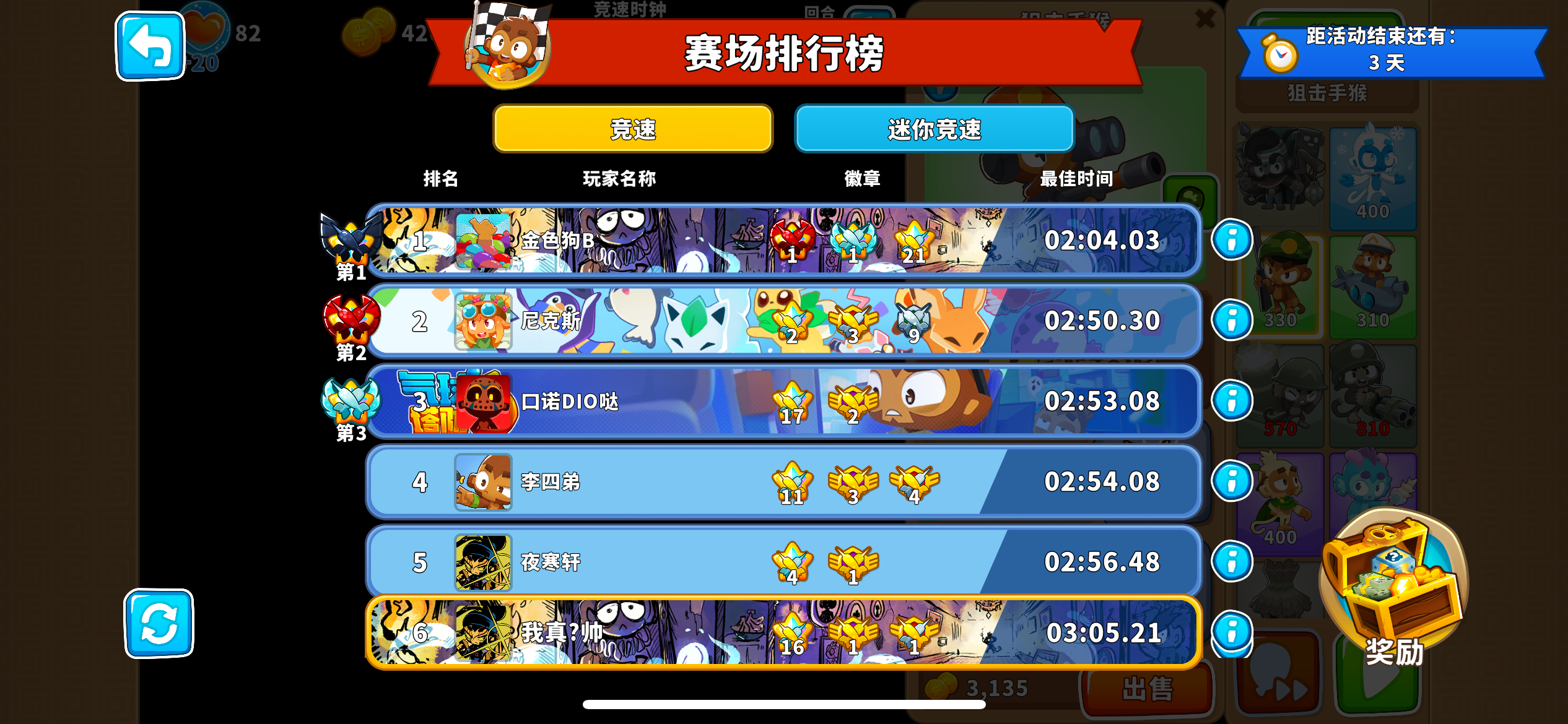 今天的普挑会比高挑稍微有些难度,想要一猴通关几乎难如登天,需要根据回合穿插破隐与破铅的猴子以下是一些我游玩的小tips:1. 唯二既能破铅又能破隐的猴子共两只,204冰猴与032工程师,需要注意的是前者无法破白气球,后者单挑打aoe伤害属实堪忧2. 含铅气球的回合有:28,30,37,38,45(加固铅)3. 含迷彩气球的回合有:24(一只可以不必理会),33,36(共20只迷彩重生绿气球