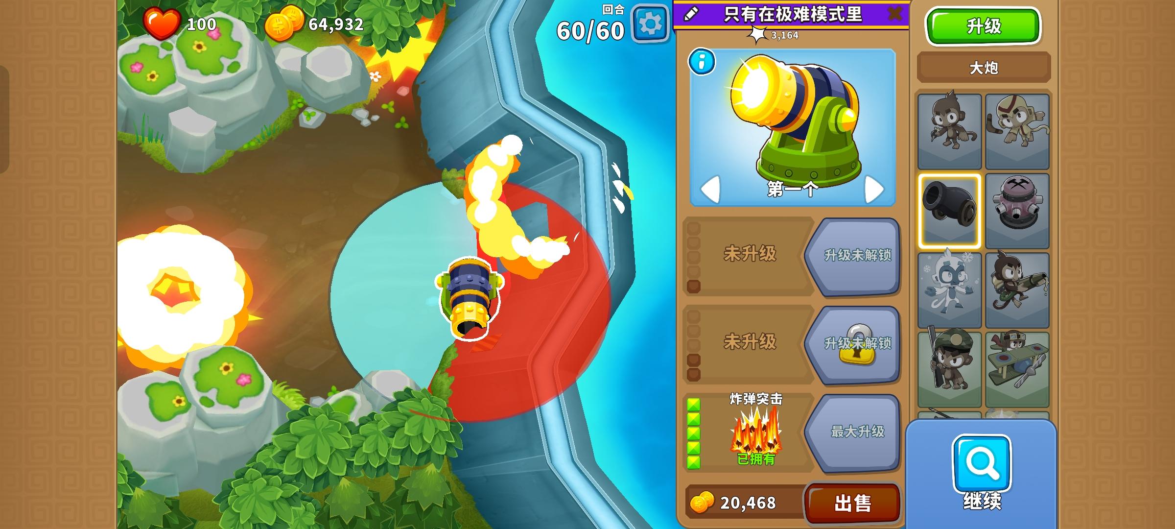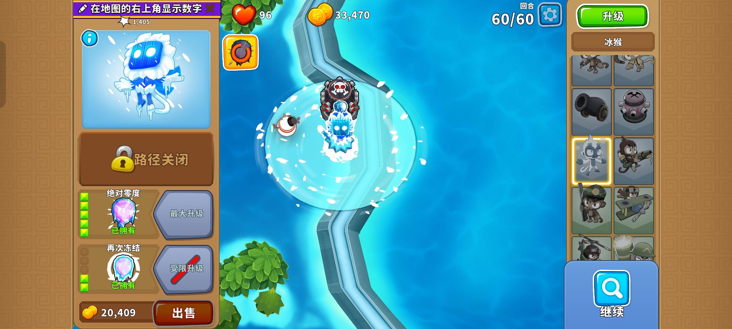 首先祝大家圣诞快乐,希望大家也能开开心心过圣诞!并且我又能幸运地做到第一个通过!最简单的方法当然是005炼金术师,直接代码秒杀,并且炼金术师自己也能无视障碍攻击!加强后的005大炮也能利用被动技能秒杀且无伤,堪称挂机流打法!在左侧的两块大石头上放下205机枪猴也能轻松通过,因为这两个地方算是此图的最高点,无惧障碍!最后还能用140王牌飞行员通过,在图上差不多的位置放下它,用炸弹消耗至残血,