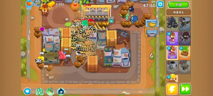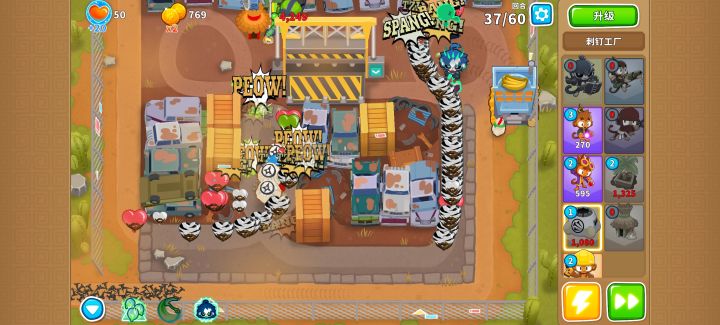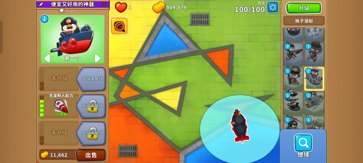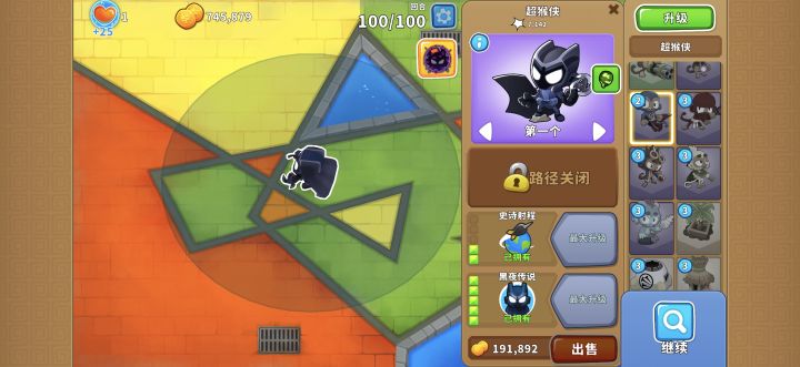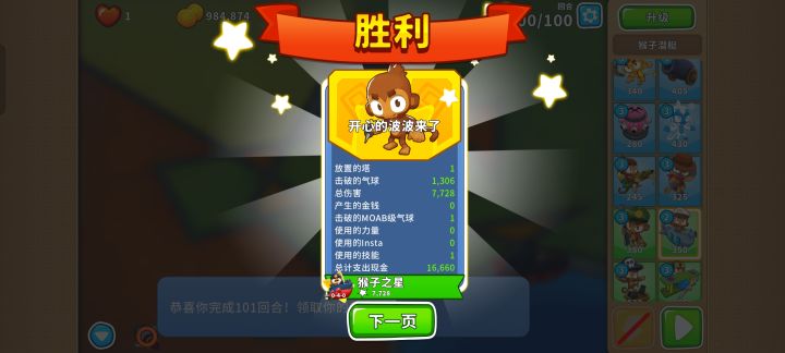 如图所示放置025超能猴,今天这么多钱打100波,还是比较轻松的#气球塔防6 #高级挑战