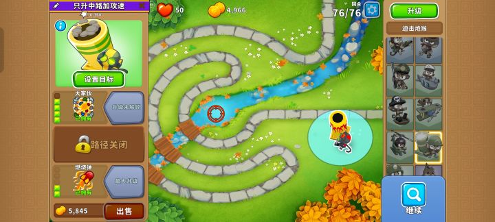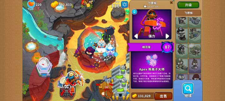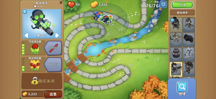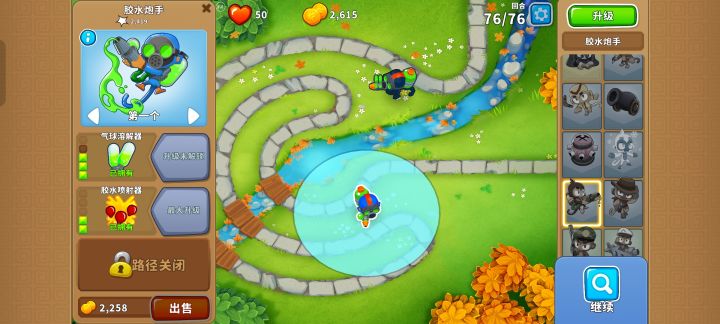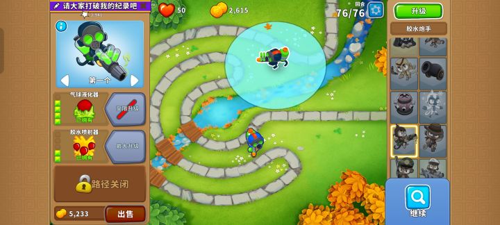 依旧是76波陶瓷重生气球,依旧是上路胶水猴(一个420,一个320如图所示放置),低级气球最严厉的“父亲”#气球塔防6 #高级挑战