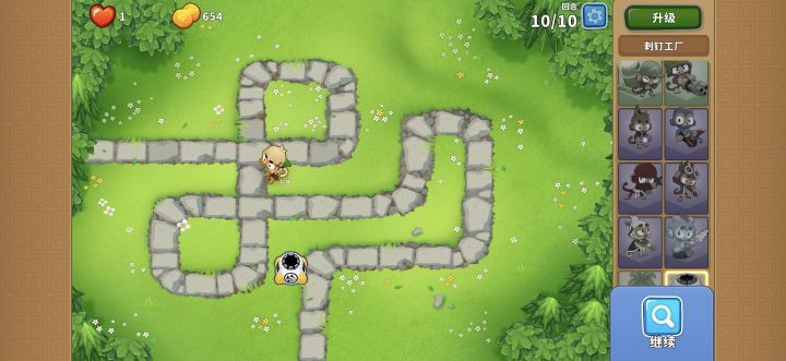 如图所示放置110德鲁伊猴加000刺钉工厂 或者用100刺钉工厂,然后再升级到110。打快速气球还是刺钉工厂#气球塔防6 #高级挑战