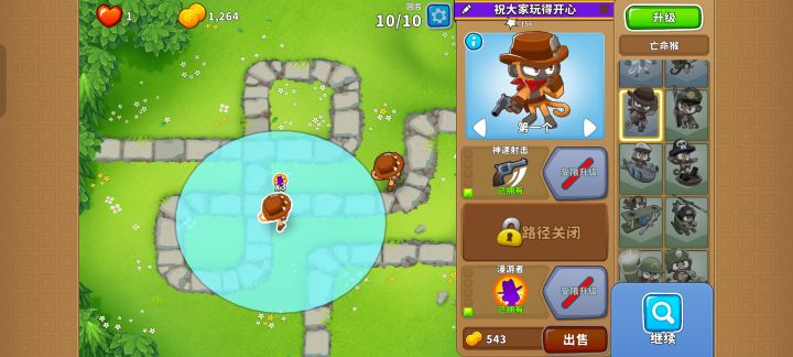 如图所示放置110德鲁伊猴加000刺钉工厂 或者用100刺钉工厂,然后再升级到110。打快速气球还是刺钉工厂#气球塔防6 #高级挑战
