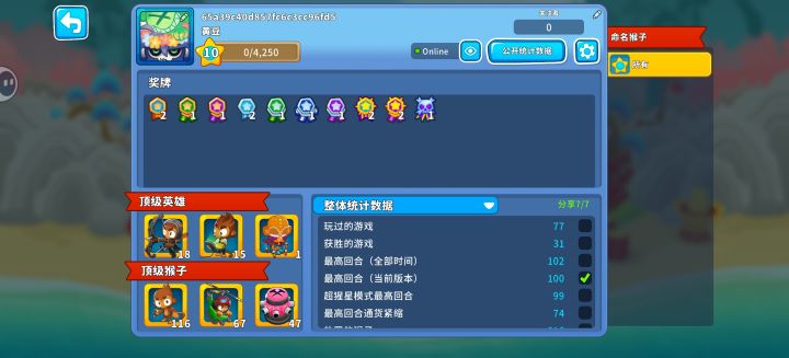 四个模范对战一亿六千血超级气球!!!玩的最爽的一次,从来没有见过血量这么厚的!(希望以后多来点类似的)这次农的也特别爽,第一回合整出520农场+其他小的农场若干具体打法(打的不好,多多指教(๑•́ωก̀๑))(模范度以我自己打的为准,不包括你比我高的情况)一阶:主要输出250机枪二阶:再多搞几个五级塔三阶:250超猴,205超猴(不放心的话,还可以整一个大炮模范)四阶:96度海盗(太可
