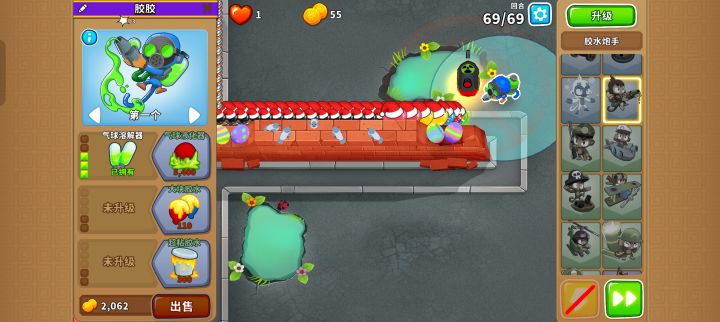 先在拐角处放下400冰猴,然后在图上这个位置放下300胶水,钱够了马上先升级冰猴中路一级,然后升胶水中路一级。就能成功通过!PS:昨天有自己的事情要忙,所以休息一天,今天就可以继续为大家更新新的高级挑战攻略了。祝大家520快乐!#今天游戏圈发生了啥 #单机游戏 #气球塔防6 #游戏攻略 #游戏日常
