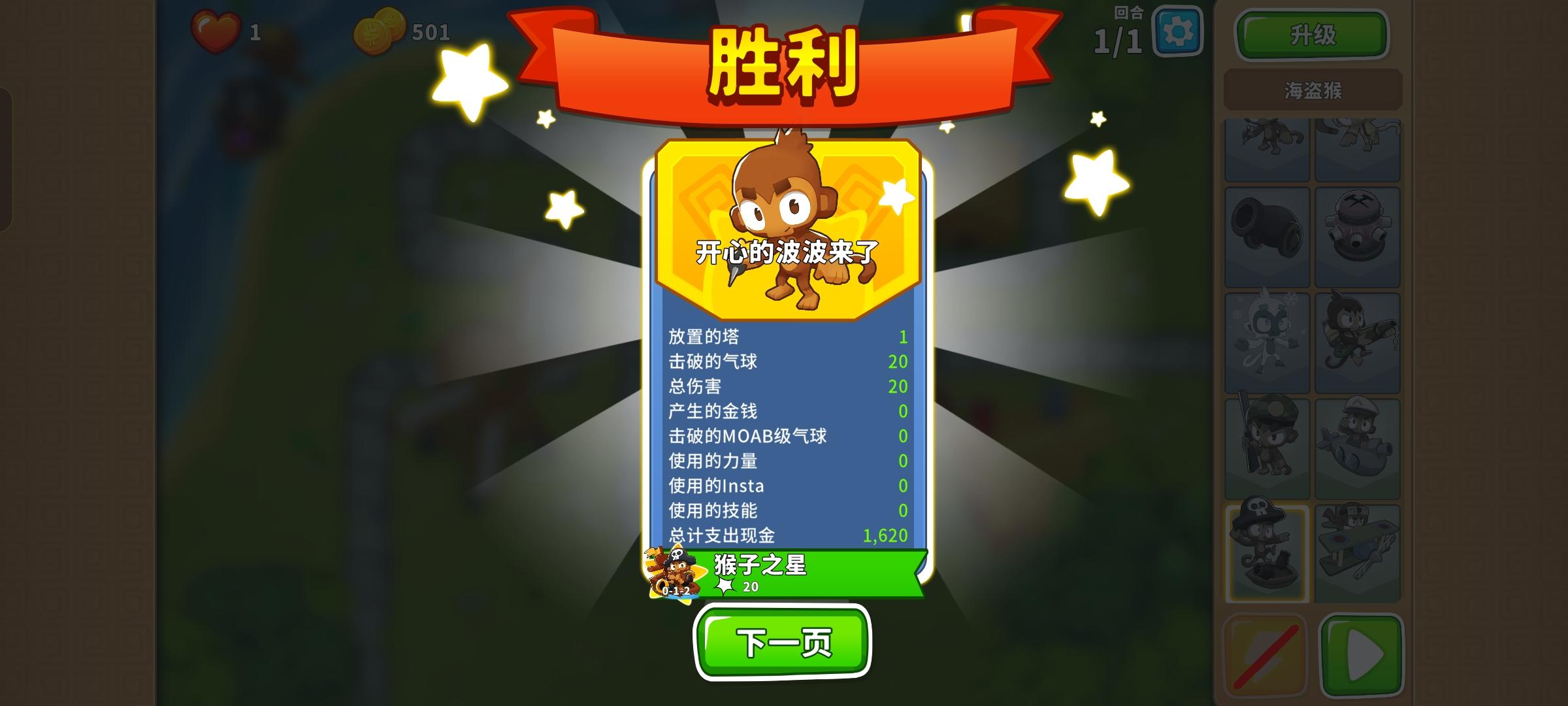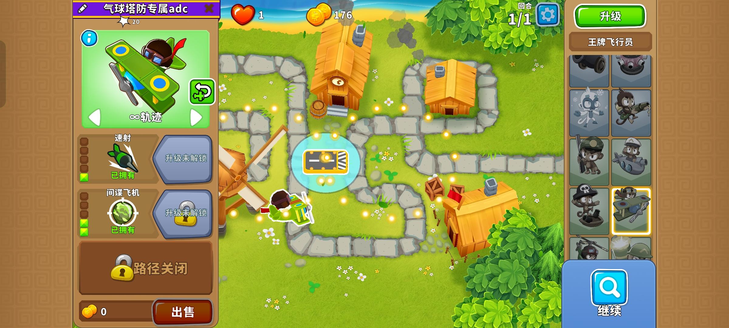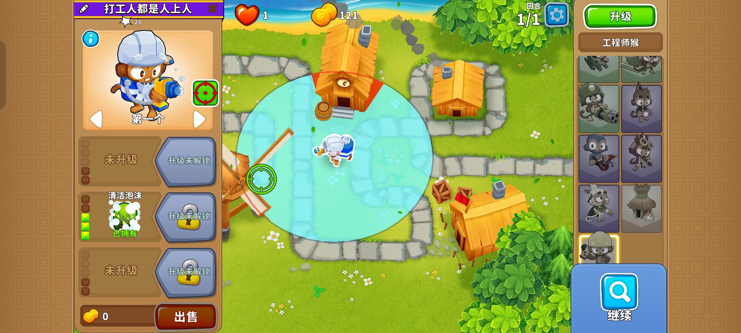 在仅有的金钱和阶数仍然可以打爆迷彩气球。最方便的当然是012海盗猴,甚至002就够了。在中间位置放下120王牌飞行员,♾️路径,也能轻松通过。除非运气太差,没打中气球。最后就是030工程师猴,直接用泡沫解除迷彩属性轻松解决!#今天游戏圈发生了啥 #单机游戏 #气球塔防6 #游戏攻略 #游戏日常