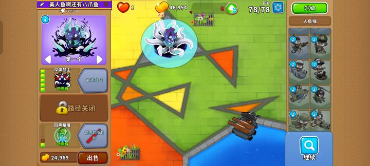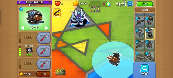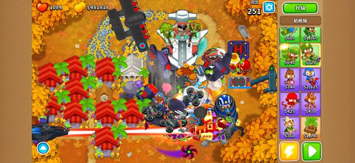 怎么升级都可以,不过我比较懒,想解放双手,所以升级0-2-5(有樵夫建议升级5-2-0),再搭配一个1-0-4的猴子村(猴子村放中间),直接芜湖~起飞🛫