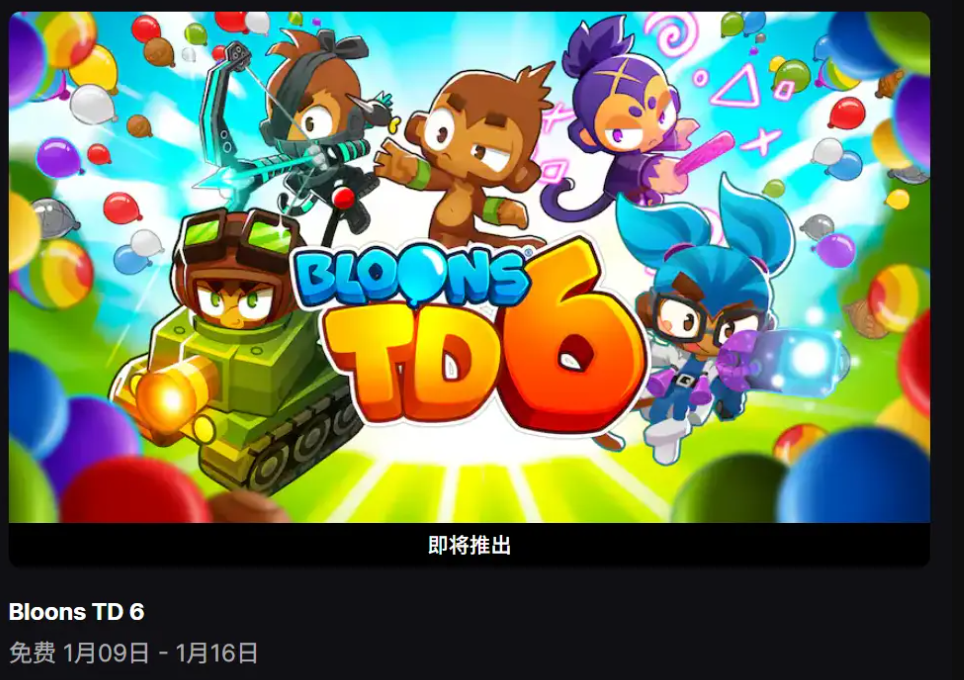 Epic喜加一不停歇!1月9日免费领《气球塔防6》!