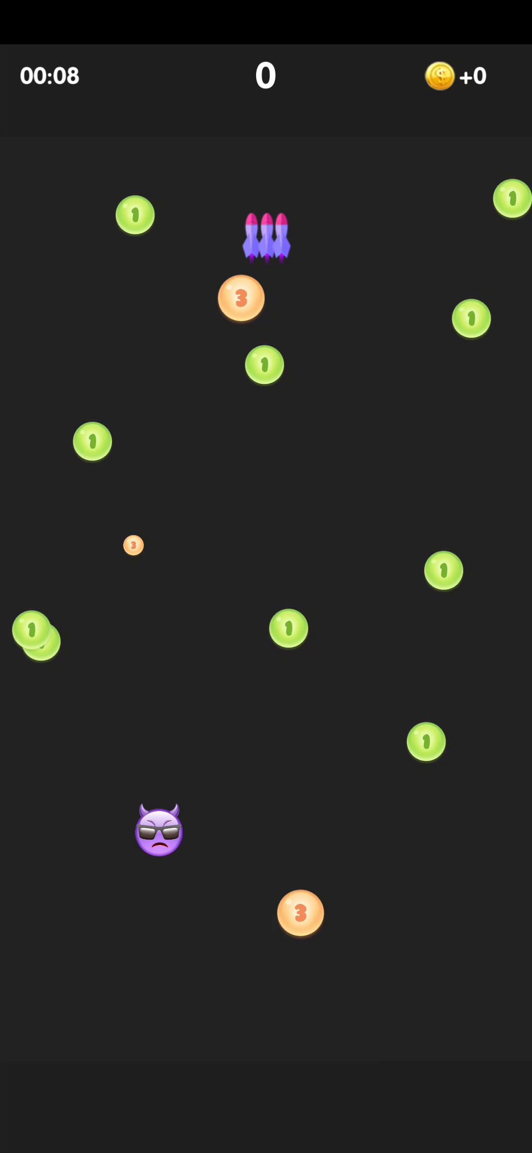 推荐第一个蓝色范围飞弹先升到三级(这个是升级完最能有效帮助苟活的)在角落4-9秒不动,会有球来找你,并不想是男人就撑过10秒那样,所有的飞弹都冲你来,不用给假走位,找缝隙苟活下来就行蓝色飞弹尽量出现以后15秒再用(期间也不用其它道具)火箭飞弹能留就留,他这个是随机的,不会优先帮你打身边的球球回旋镖也尽量多留一会再用,要不没碰到球球收益太低了火焰圈是最鸡肋的(推荐最后升级),伤害的频率太低了,超过数字3的球球你就需要往反方向躲一躲了,要不可能碰到你