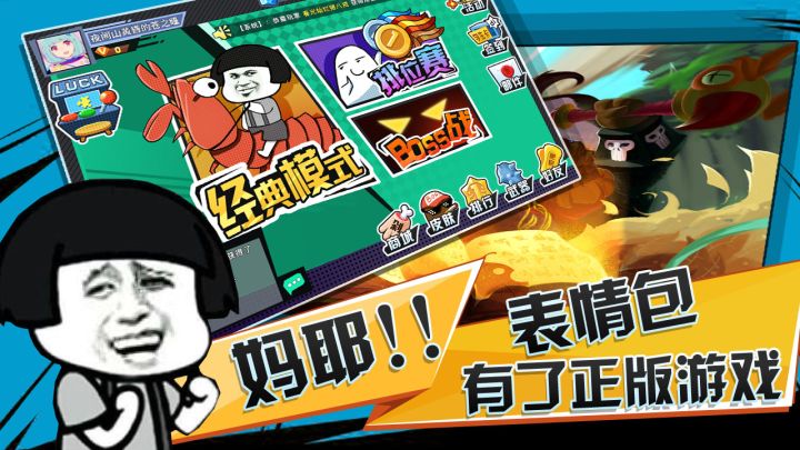 开发者的话妈耶!!表情包有了自己的正版游戏了! 金馆长现在就在这里等大家来玩! 第一次测试即将开始咯,感谢大家的关注,多多关注,多提意见哦!