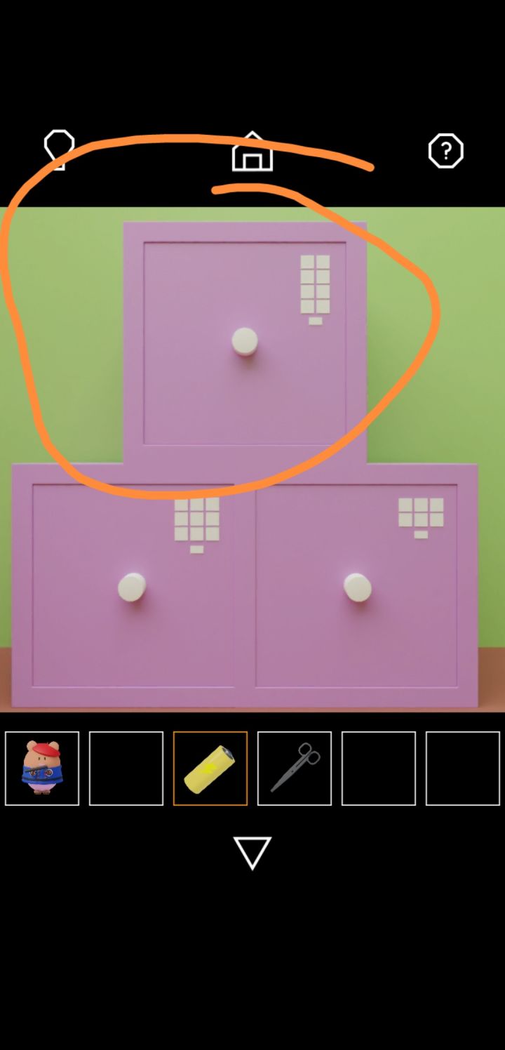 视频版:红色圈为解密操作,黄色圈为解密线索红色圈为解密操作,黄色圈为解密线索红色圈为解密操作,黄色圈为解密线索点击仙人掌的侧面,有一把扳手。*获得扳手旁边的衣架为解密线索点击冰箱下层,解开谜题,打开下层冰箱通过衣架上的左右朝向可以解开柜子。*获得奶油袋冰箱中的披萨为解密线索餐盘为解密线索点击水池下的柜子,解开谜题打开柜子旁边瓶瓶罐罐为解密线索密码为冰箱里披萨中橄榄的朝向