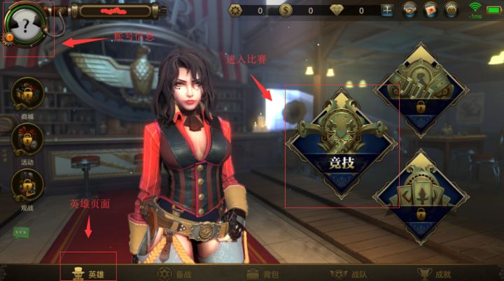 感谢各位朋友参与此次限量测试,本次测试主要是核心玩法测试,周边功能大多并未开放。测试中如果遇到任何问题或游戏相关的建议请反馈到官方游戏QQ群:4999422031.打开游戏后进入账号登录界面,输入预约的手机号码点击登录游戏。 2.进入主界面,当前开放的3个模块:账号信息、英雄、竞技3.账号信息:点击进入后可以更换头像和性别4.英雄:点击英雄进入英雄页面5.点击英雄进入英雄信息页面,点