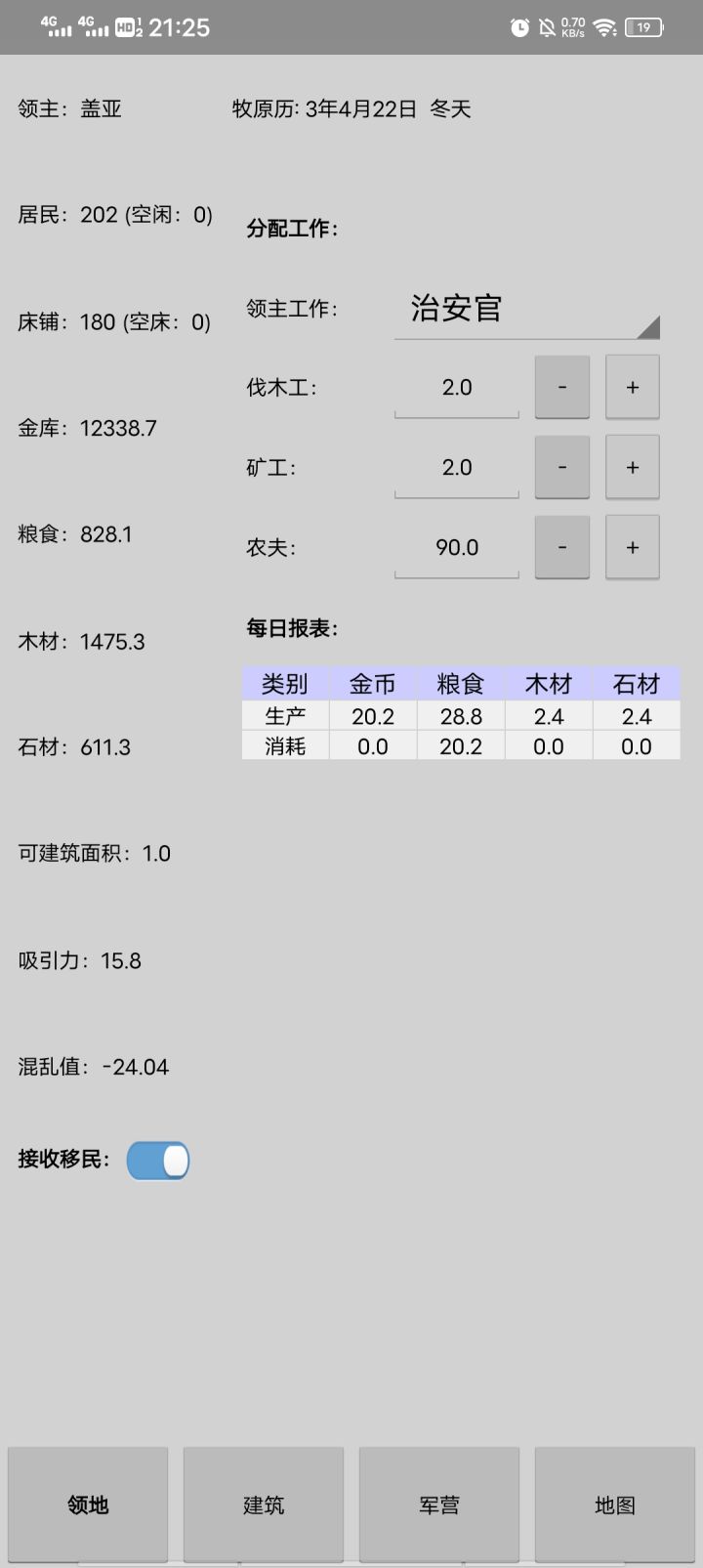 游戏不错,玩法挺新颖,就是bug蛮多的,人口卡成负数了,有点迷茫