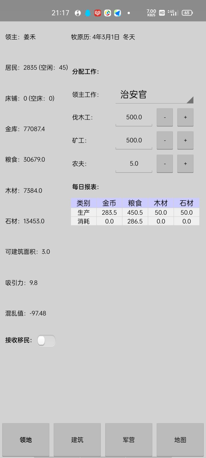游戏不错,玩法挺新颖,就是bug蛮多的,人口卡成负数了,有点迷茫