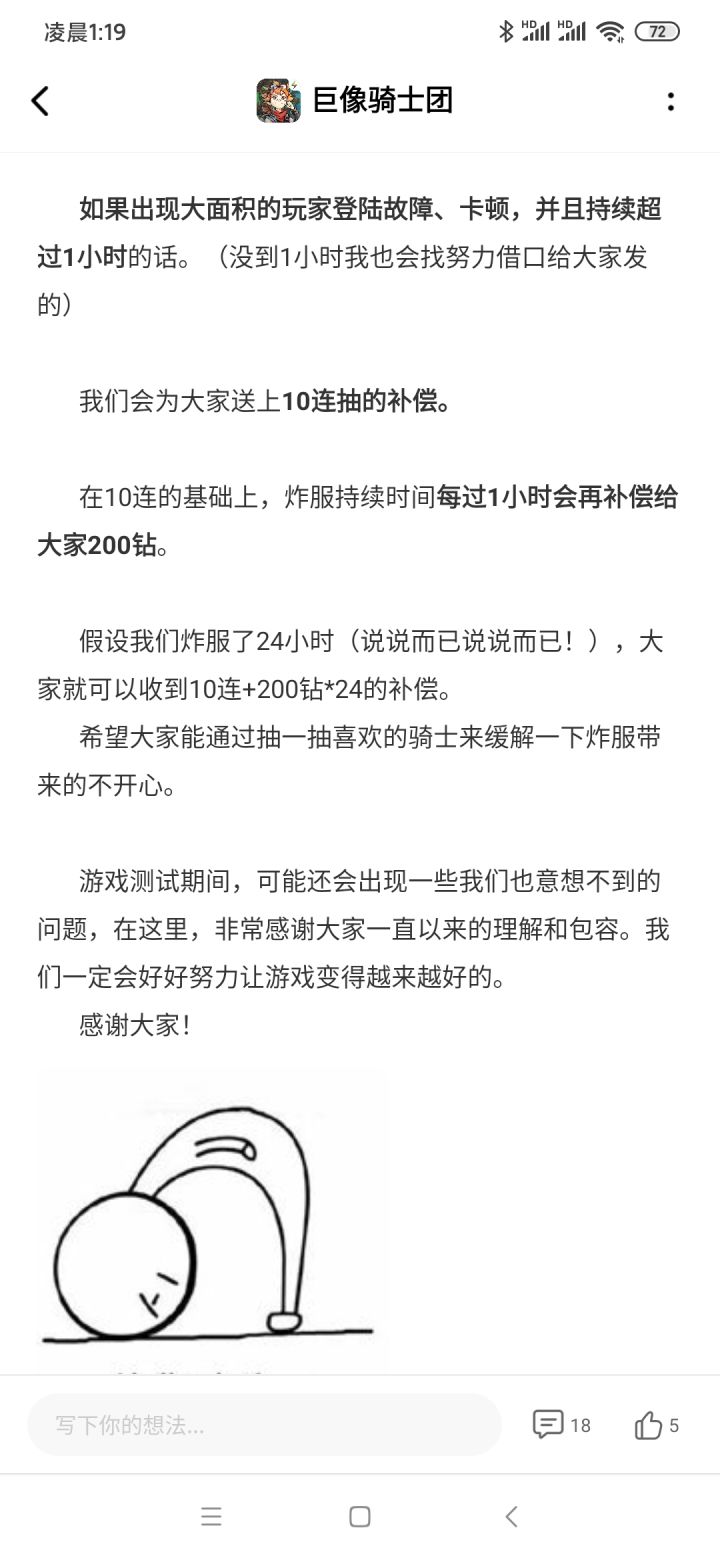 巨像骑士团18:00测试结束公告