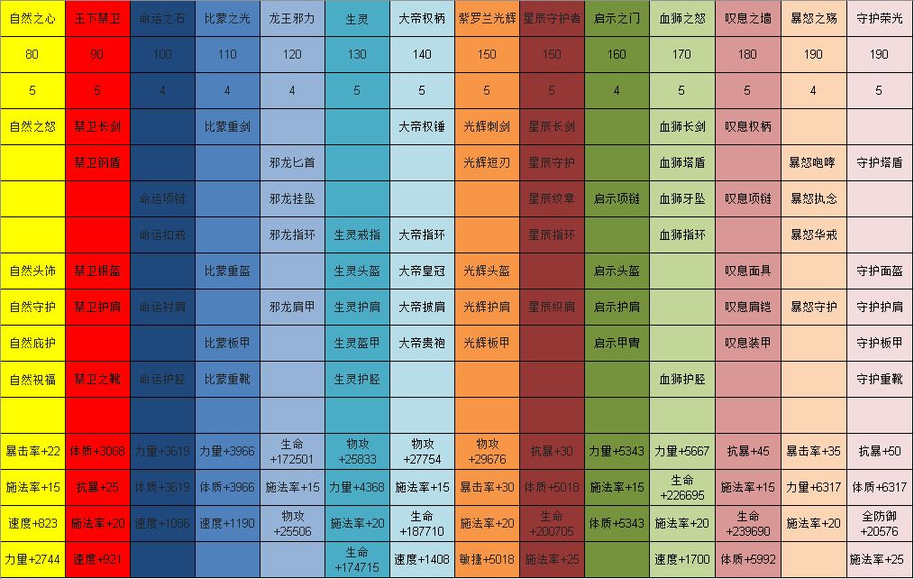 最近看了很多攻略,始终没有血狮 ,血狮不强还是咋的? 今天发一篇主血狮、元素、星辰的装备搭配,纯属个人意见,不洗勿喷哈,谢谢大佬指点。 本片攻略 主要是最少血精出装备的套路 做到装备使用率最大化 本人在天启子位面, 希望能给萌新提供一个思路,看到我的装备方法发扬光大也不错哈。 90级装备为什么直接到110级呢?因为90可以完美的渡过到110,用20级的时间赞熔炼、血精、神器碎片、妥妥的安排。洗装备