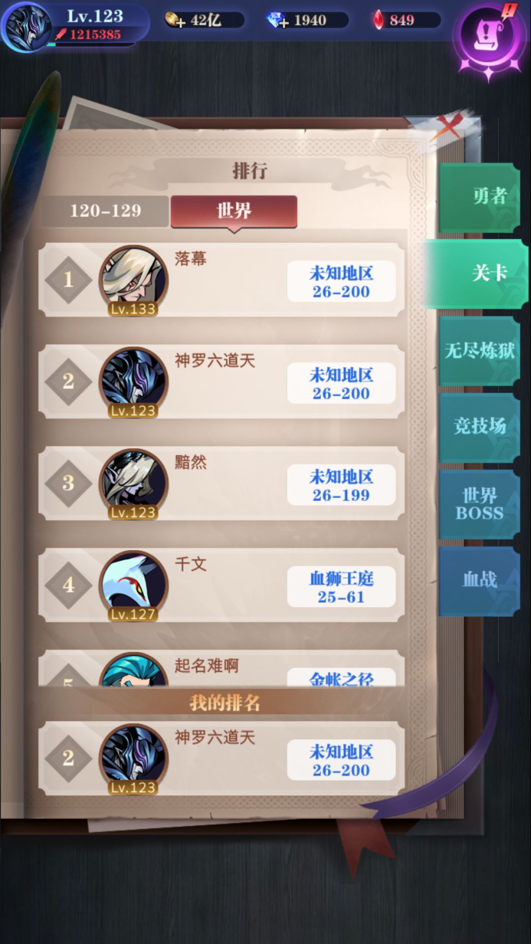 19年10月退坑,22年1月回坑的(感谢大头我的号还在) 回来时134级,邮件领了不少东西 一转的攻略都不太详细,随便写点经验,希望对同样是萌新的有点帮助。 目前一转第六天,102级,20-99(还在推),无尽1944 首先阵容,最常用的亚瑟,女皇,白羽,风语,色欲 备用第二阵营狮子,天使,亚瑟,女皇,风语 补位元素 装备88抽近卫(护肩,副手) 98抽命运(护肩,鞋子,项链,戒指) 比蒙(剑,头