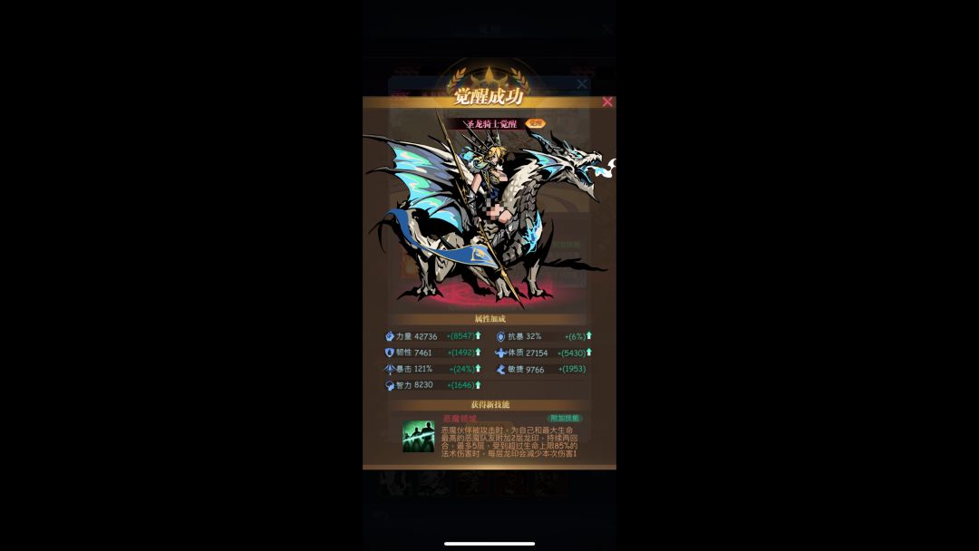 龙骑觉醒后在高转推图掀起了一阵风波,许多玩家想知道二转觉醒龙骑的推图强度。因此本次主要测试了单觉醒龙骑,搭配一系列+0的角色推二转。 直接说结论,强度其实一般,属于能玩但不是特别强的水平,肝一点差不多三天能推完,103级左右。像二转强度比较高的正义、怜悯基本刚到100级就能推完。 另外,龙骑相较于恶魔队单觉醒铁臂的话,也会差一些,主要还是由于龙骑的叠攻上限较低,前期推图快,后期怪物数值上来了就