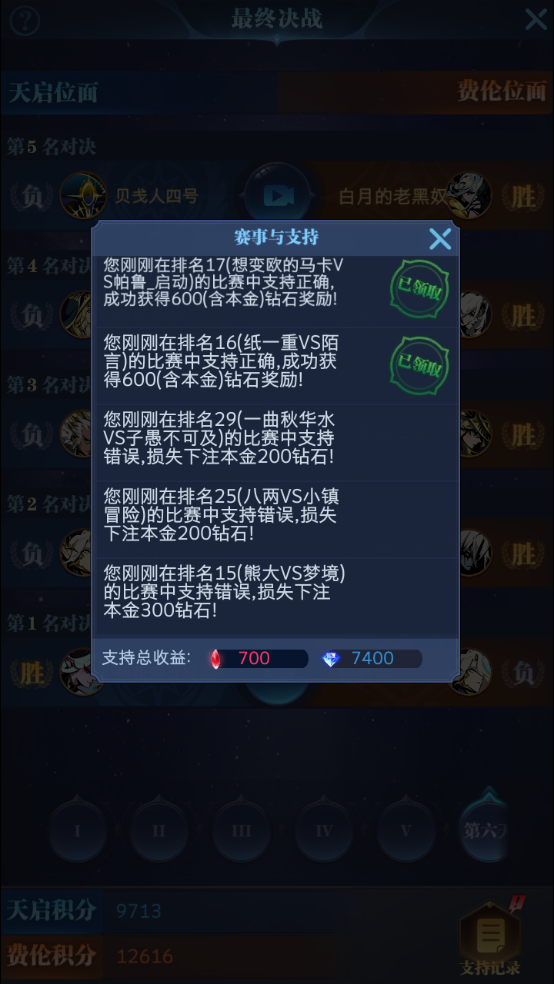本次一区位面密码押错3场,其中一场八两VS小镇冒险属于技术性失误导致的,其他2场应该是概率导致的。好了,我们下期位面见!!!