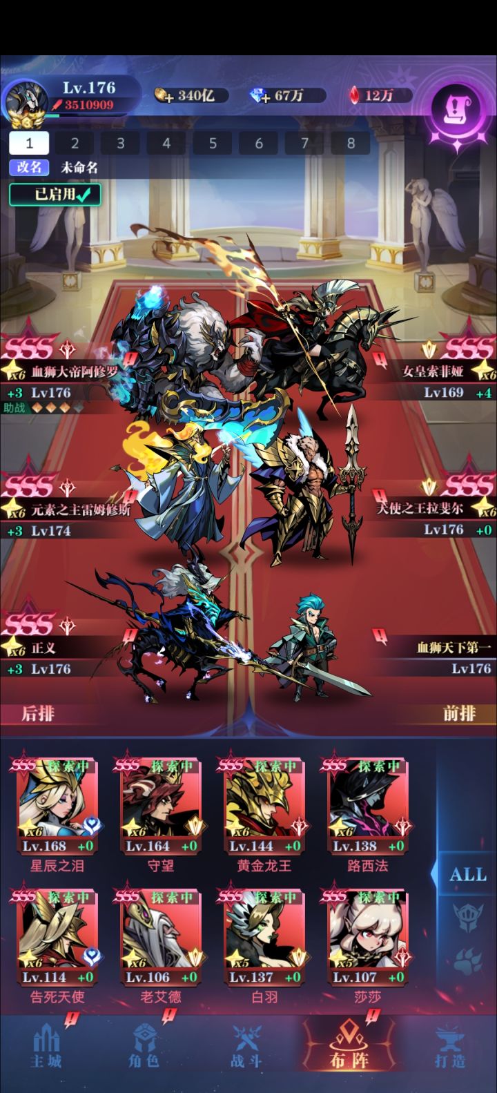 之前一直是双狮体系,视频中加1白云正补强中,速度慢所以穿了两件至高[表情_吃瓜],阵容常驻怒狮,白云,悠悠,鱼人公爵,核心是首回合保证五兽不掉人(一般掉一个大概率也能过,只要掉的不是白云[表情_捂脸哭]),这里也可以理解成首回合五兽存活就等于过图了[表情_斜眼笑],打一般前排爆发物理图就老牛了,后排爆发物理上莉莉(怒狮放前排都活不下时[表情_吐舌头]),后排爆发法图老牛换亲王,肉图还得是上血狮补伤