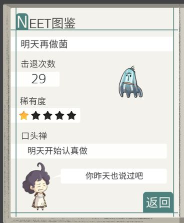 明天再做菌,可以附身在任何人身上。临床表现:具有典型拖延症病状,寻找各种奇葩理由拖延眼下的工作,问就明天再做!信仰名言:拖延一时爽,一直拖延一直爽!——鲁迅为了彻底消灭这种细菌,我们友情邀请来自昭和游戏,代号为:“爆怒老妈”的一位女士,她将在2月28日上午10时,亲自示范如何除菌,欢迎小伙伴们准时收看。