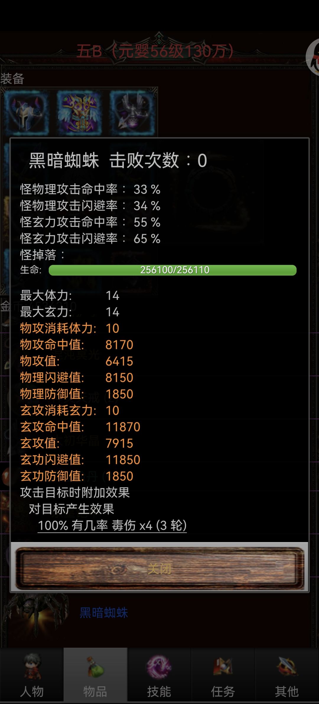 图1,60级的元婴极限,战力强过榜单所有天音,高过部分化神期。 图2,8阶9阶武器 图3,需要抓的宠物属性 图4,元婴期的boss属性 图5,天婴期的BOSS属性 图6,化神期的BOSS属性 首先50级过了万年树魔后,成功到达元婴期。很多小伙伴都不知道怎么继续玩下去了,直接卡在第一个BOSS金魔龙那过不去。双闪流存好档,靠着36%的闪避反击多试几次还能偶尔打过,但靠这种方式想出新装备实在太累了。 最