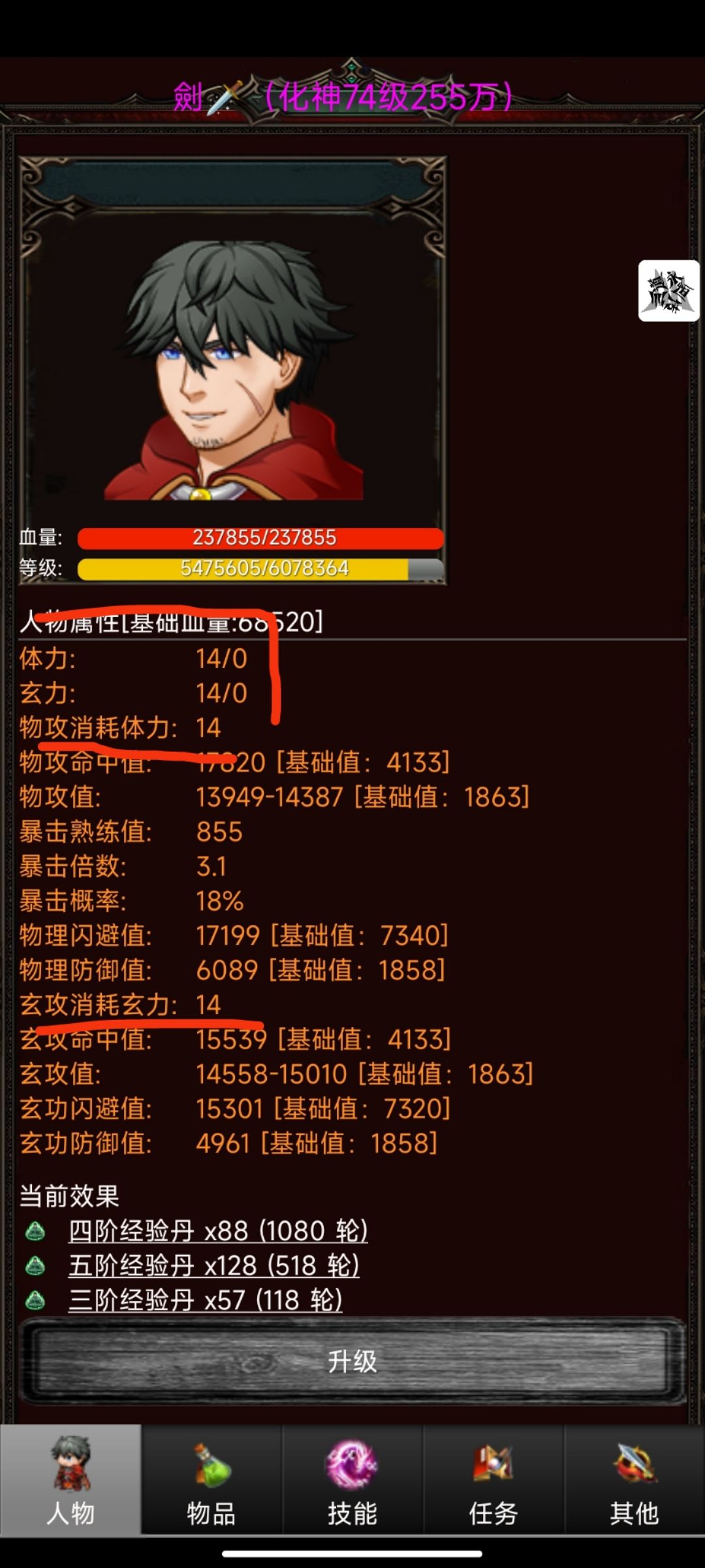 首先50级过了万年树魔后,成功到达元婴期。很多小伙伴都不知道怎么继续玩下去了,直接卡在第一个 BOSS 金魔龙那过不去。 双闪流存好档,靠着36%的闪避反击多试几次还能偶尔打过,但靠这种方式想出新装备实在太累了。最惨的就是走了攻击流的直接就是打不过,比如我为了能一轮攻击4次直接点满了武击潜能和玄击潜能(这样总体力和玄力分别18点,天绝剑攻击一次需要10点体力玄力,配合火焰魔将掉落的太初华品项链再减