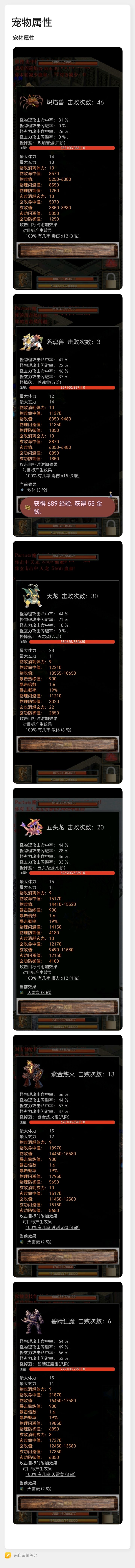 图1,60级的元婴极限,战力强过榜单所有天音,高过部分化神期。 图2,8阶9阶武器 图3,需要抓的宠物属性 图4,元婴期的boss属性 图5,天婴期的BOSS属性 图6,化神期的BOSS属性 首先50级过了万年树魔后,成功到达元婴期。很多小伙伴都不知道怎么继续玩下去了,直接卡在第一个BOSS金魔龙那过不去。双闪流存好档,靠着36%的闪避反击多试几次还能偶尔打过,但靠这种方式想出新装备实