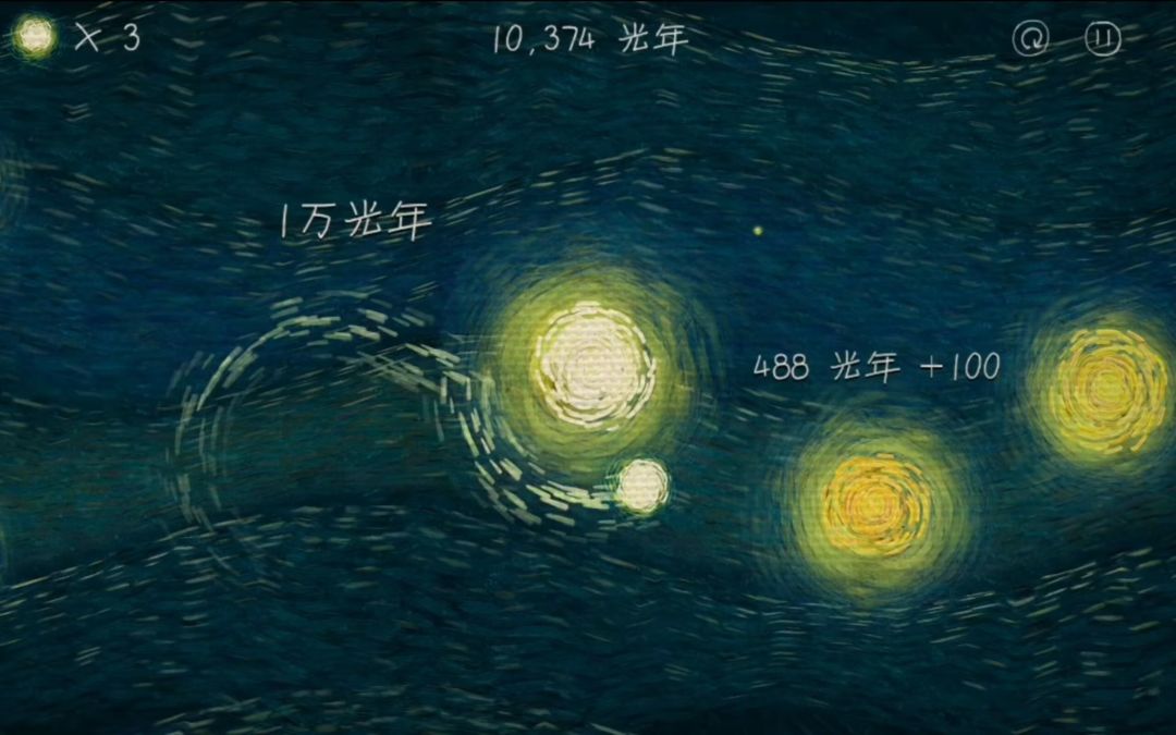 1,一条命超过一万光年会保留里程 2,命用完了会加两次,每次加两到四条命,减一万光年里程 3,连续上黄星星会有连击加成,二次连击加一百光年,三次加两百以此类推 4往后面星星越小,在九万光年拿一万比在一开始拿五万难 6,一次最远移动大概在1400光年,但是能瞄准的最多1200光年,后面能射中但是看不见光