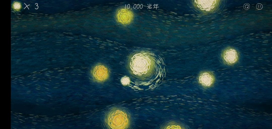 在其他星球上停靠转圈补充自己的光圈大小,然后离开,前往下一百光年外的星球。 即使星空吞噬我的光芒,我会不断地停靠,一点点靠近你。 遇到了大大的星球,转动着散发着柔和的光,我知道那是光球补给站 即使不小心堙灭在黑暗,也没有关系,还有下一个光球
