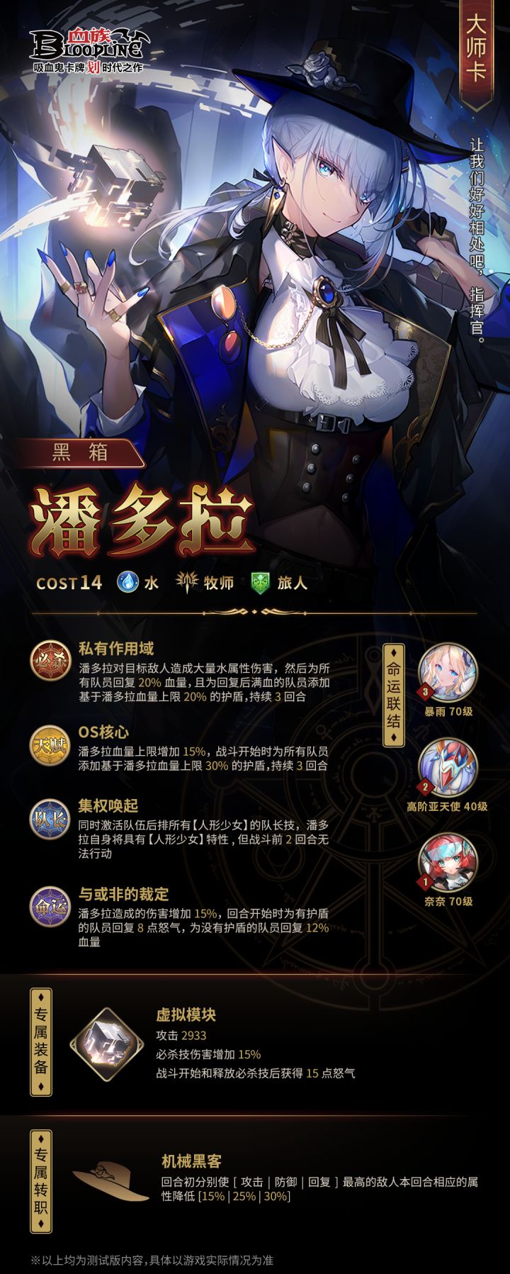 ♪(^∇^*) 翘首期盼的国庆长假即将到来,主页菌顺着网线都能感受到宝子们激动的心跳。所以究竟会发生什么呢,让我们来细说~一、全新大师卡潘多拉9.30 10:00 ~ 10.13 23:59,全新大师卡 · 潘多拉 限时登场!潘多拉命运卡 · 暴雨 相随登场!首次登陆游戏可在邮箱内领取潘多拉召唤晶石*1领取条件:要求队伍等级达到20级(含)以上,限领取1次潘多拉情报完全解禁:二、大师卡