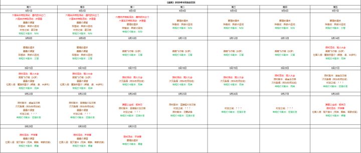 2020年8月活动日历