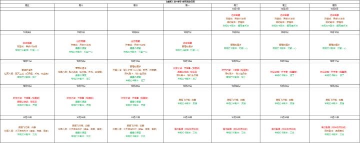 【血族】2019年10月活动日历