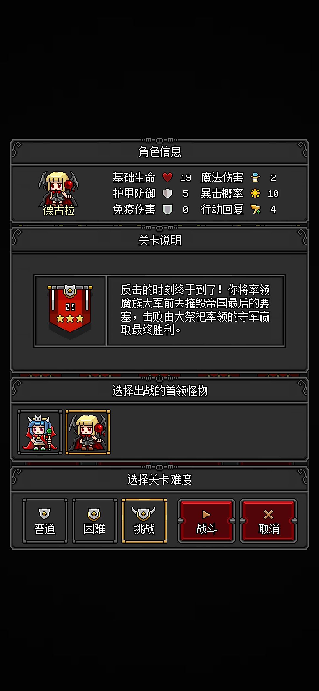 通关策略,我喜欢法老,钱多为所欲为,然后熔岩怪推进,推塔后留个还剩1行动力的熔岩怪,下回合回复3就能占塔修工厂了,在获得一个新工厂时,我一般会用史莱姆舔一遍绿色的地方区域,然后安排两排熔岩怪交替进攻,第三排是远程哥布林,小细节是熔岩怪行动力上限是5,当第二排大于等于3行动力时可以换位补两发攻击,低于等于2行动力没必要换位,等下回合有4或5行动力再换位进攻。