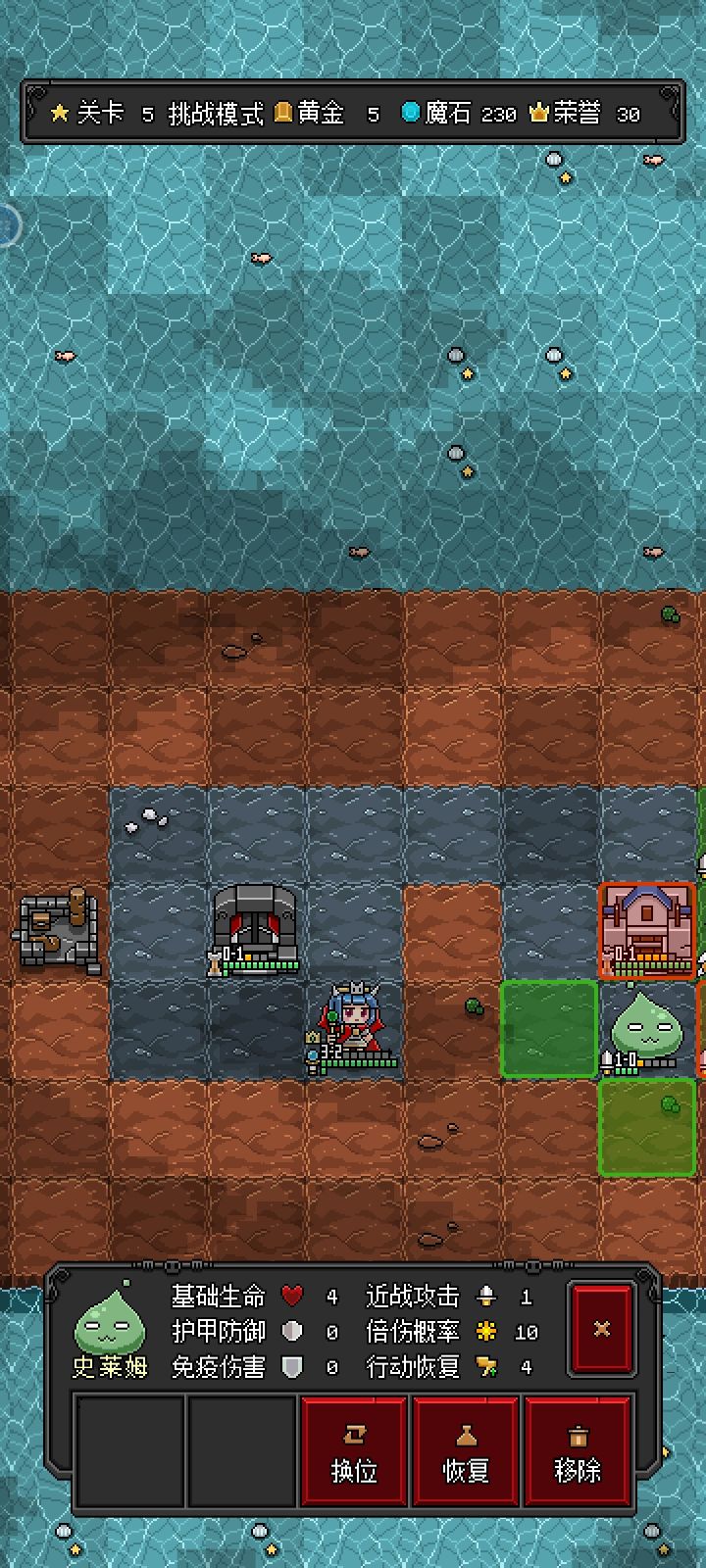 速刷魔石首先初始王女英雄,然后够荣耀买史莱姆然后第五关炼狱开始1.王女杀完弓箭手往下走一步2.买史莱姆,走完对面这些格子然后卖掉,1个不行就2个史莱姆走,一般把冲锋升满就1个行了3.弓箭手,可以把暴击拉满,这个时候对面基地后面的怪不会动而且不会出怪,有暴击2 3回合就拆了一次10来20秒24魔石