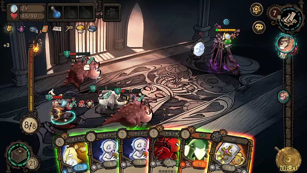 挨打,我们是认真的!万甲反伤狮子,一刀999登顶混沌模式,核心卡牌是意犹未尽+巩固+野蛮冲撞+铁长城+虚张声势+来打我呀,其他多余的卡牌都删掉,宝藏选叠甲和叠荆棘的就行。