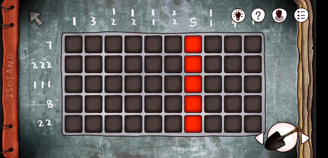 不直接看答案官方给出的提示是 ' 1和2不代表数字' 加上箱子外面的小示例,可以看出数字代表的是连续多少个的意思。比如 ' 2 2' 就是连续两个,空几格再来连续两个,' 7 '就是连续点七个红点点,' 1 1 1'就是点一个,空几个不知道,再点一个,再空几个,在点一个。 所以这就是个逻辑推断题,和数独有点相似思维。 下面给出完整解密的过程。 PS:小编手速不够快,点完最后一个直接开箱子了,没来得