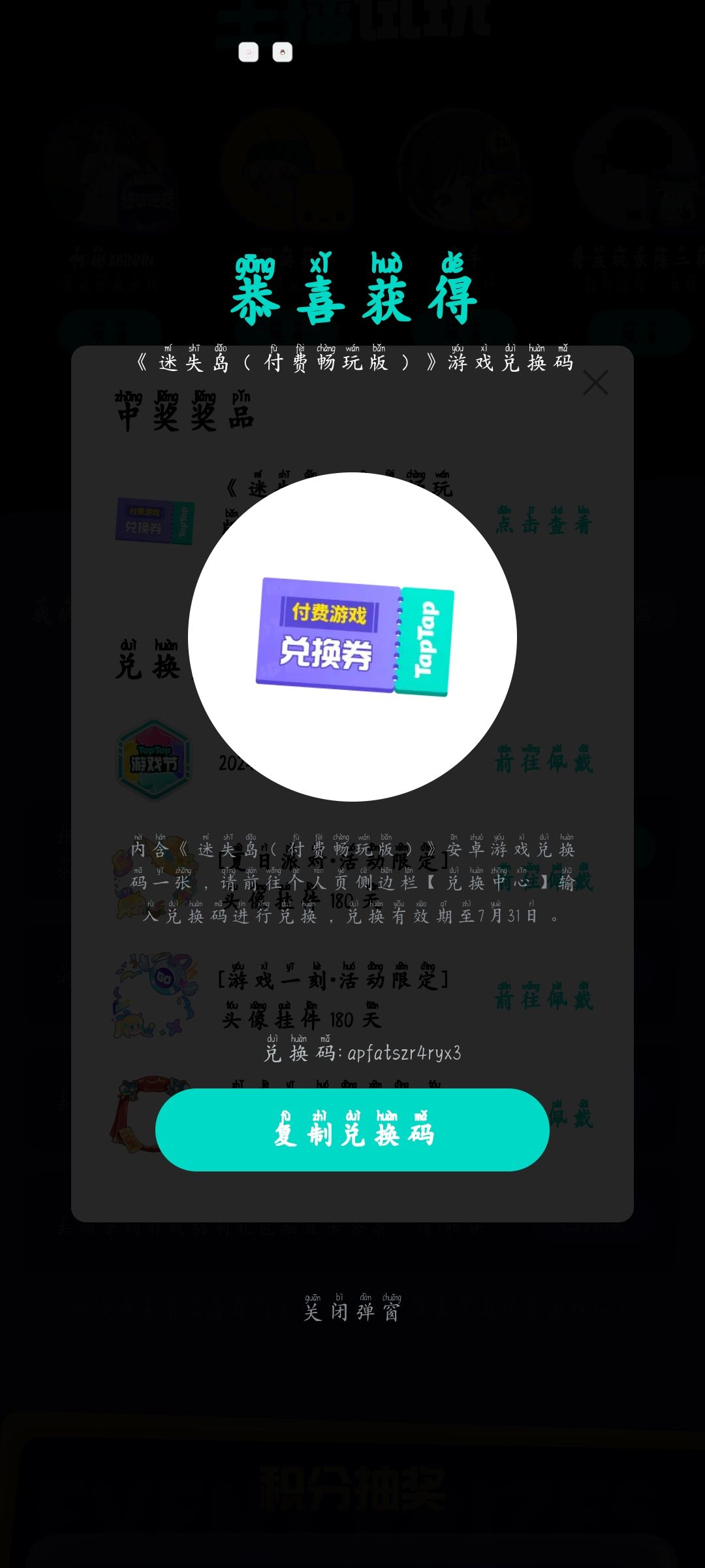 一个兑换码送给有缘人了