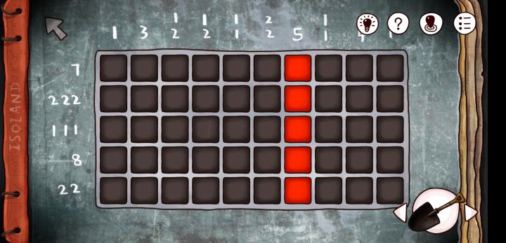 不直接看答案官方给出的提示是 ' 1和2不代表数字'加上箱子外面的小示例,可以看出数字代表的是连续多少个的意思。比如 ' 2 2' 就是连续两个,空几格再来连续两个,' 7 '就是连续点七个红点点,' 1 1 1'就是点一个,空几个不知道,再点一个,再空几个,在点一个。所以这就是个逻辑推断题,和数独有点相似思维。下面给出完整解密的过程。PS:小编手速不够快,点完最后一个直接开箱子了,没来得