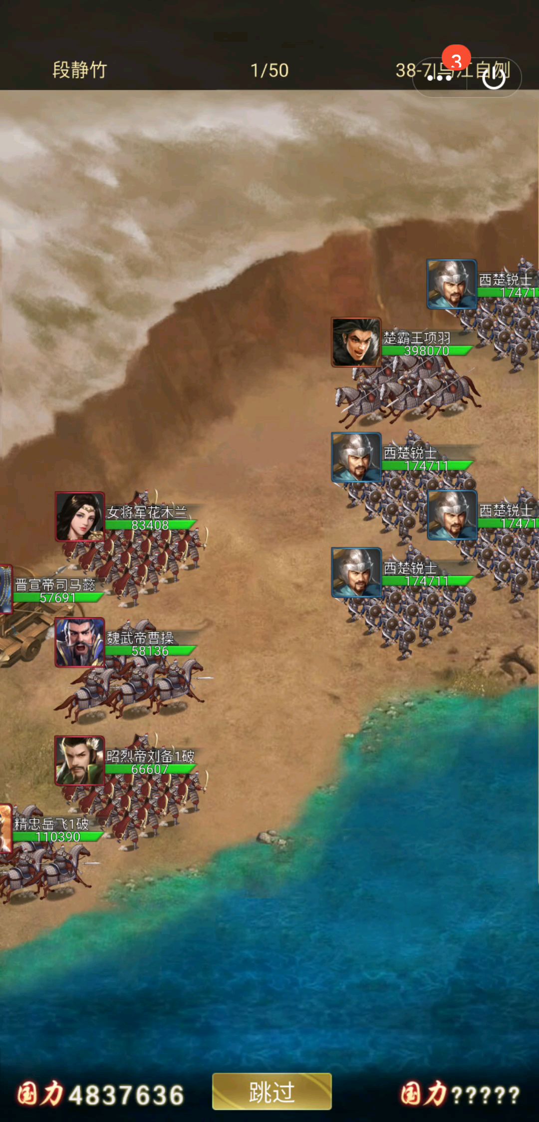 这一关我的练度根本扛不住,全靠岳飞秒,国战抢皇帝或者丞相也凑合,一个区12个名额,每周给的勋章换岳飞,基本一个月以内必出,冲冲榜更快。这比孙策还强,所以基本不用担心榜一拿了孙策。如果实在很佛系,那就只能+9赵云,赵云+9一样也是击杀连击型。