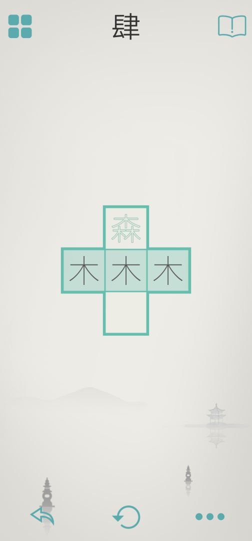汉字,又称中文字、中国字、方块字,属于表意文字的词素音节文字。汉字是汉语的书写用文字 ,也被借用于书写日语、朝鲜语、越南语等语言,是汉字文化圈广泛使用的一种文字,也是目前世界上唯一仍被广泛使用的高度发达的文字。在游戏中,玩家需要通过组合“木”、“水”、“火”、“土”四个字来组合成复杂的汉字进行通过。