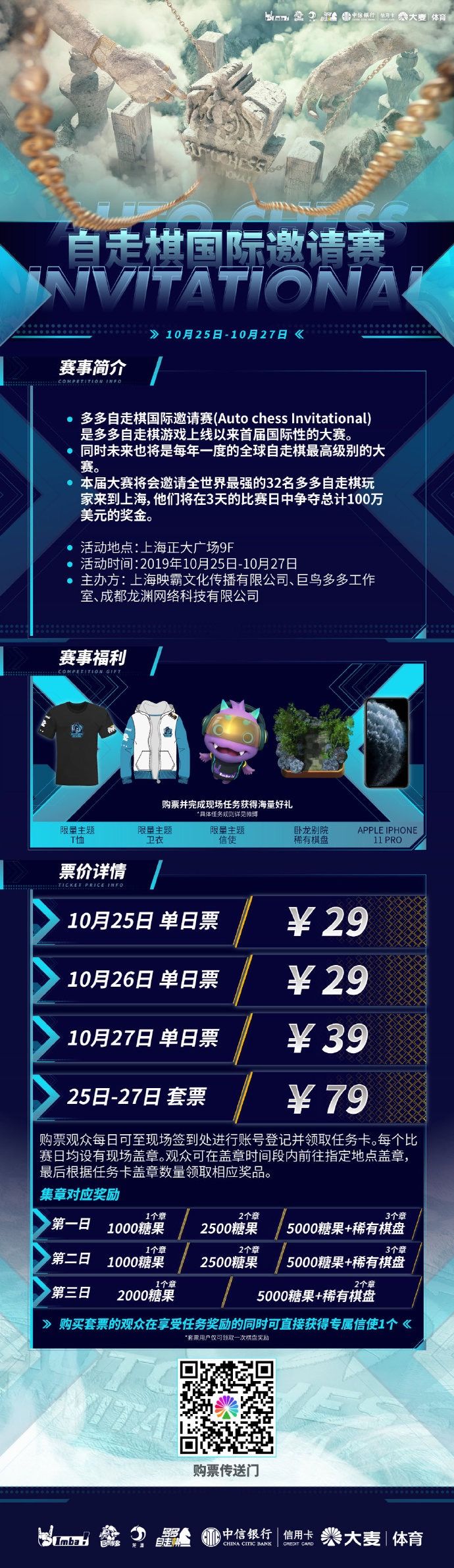 全球32位顶尖棋手凭借着精湛的棋艺从数万名选手中脱颖而出,即将在10月25日至10月27日于正大广场展开最后的角逐,共同向世界冠军头衔及100万美金总奖池发起最后冲刺! 包括秋日在内的9名中国选手也将在总决赛的舞台上展现他们真正的技术,届时前往现场观战的棋友们即有机会赢得海量好礼——限量主题T恤、卫衣、专属信使以及iPhone11 Pro!而在比赛现场参加任务卡集章活动,更能领取大量游戏内糖果和稀