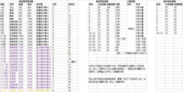 排位赛,是新手最快的成长方式,排位黑卡,是新手最容易到手的顶级卡牌。这一期,将从排位赛机制、排位黑卡的获取和介绍入手,帮助新手更快的度过过渡期。附上总贴链接排位赛每日排名奖励每日9点结算,月度奖励每月最后一天12点结算,随着你的官阶的提升,其奖励也是越加丰厚,这里个人统计了排位赛的月度奖励以及每日奖励。如下可以看到,当你到达15阶骁骑将军的时候,便可以获得超大紫碎片箱。其中包含40x5的紫色