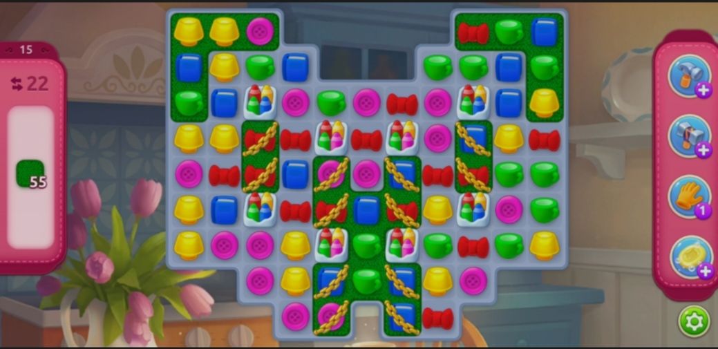 【关卡介绍】 关卡目标:草坪×55 关卡步数:22步 关卡特殊元素:锁链,蜡笔,草坪 关卡难度:超高难度 【关卡攻略】 先上原图,仔细观察,然后思考破解方法 本关看起来貌似很难,但是实际操作起来,难度系数不是很大。首先观察盘面发现,本关的障碍物有2种,一个是蜡笔盒,一个是锁链元素,但是这两个障碍物还算比较容易解决的。 利用图块的移动,掉落匹配或是合成加速道具就可以轻松消除锁链元素,在蜡笔盒旁匹配与