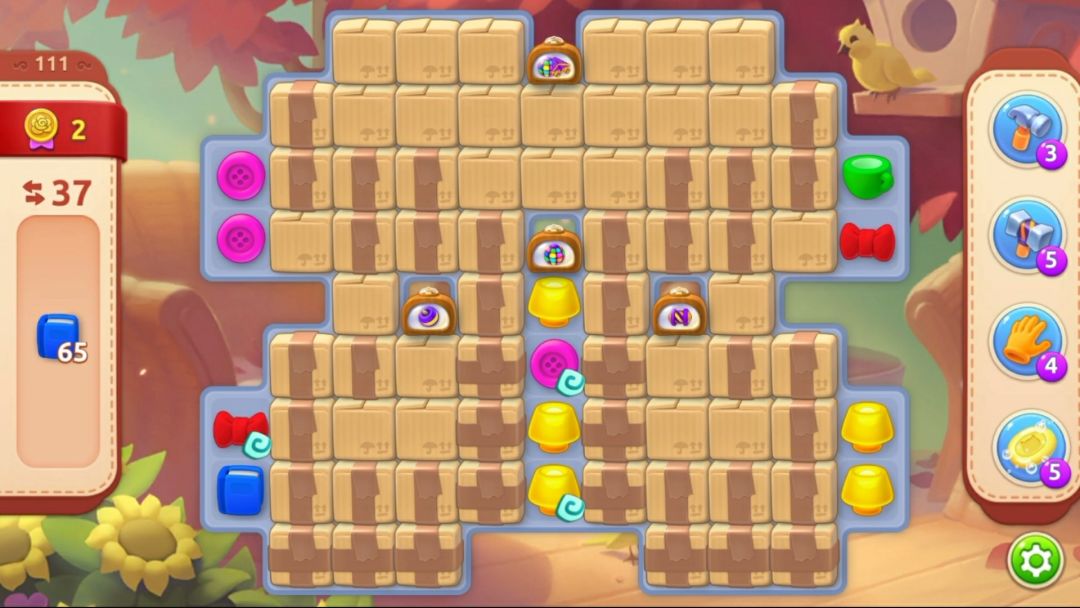 【关卡介绍】 关卡目标:蓝色元素×65, 关卡步数:37步 关卡障碍物: 箱子 关卡难度:一般难度 【关卡攻略】 先上原图,仔细观察,然后分析局面。 通过观察,本关一开局就被箱子占了满屏,必须消掉箱子腾出更多空间,这样局面中的蓝色元素才会多。 不过不用怕这些箱子,因为本关有个新元素——生产机。 何为生产机? 即可生产标签中显示的各种元素。当然要它能生产元素,就要腾出生产机下方的空间,只会这样它才