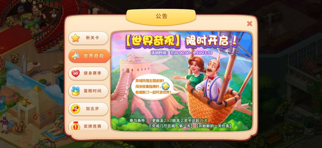 大家早上好,这几天是最热的。虽然早已立秋,但常言说的好啊,秋后一伏热死人,也不是不无道理哈。 今天我们重点来看一下今天下午即将开启的飞上云霄吧!在说起飞上云霄之前,素素想提醒大家,别忘了收集新皮肤哦!梦幻家园狂野西部主题皮肤已经上线数日,大家肯定都在积极奋战吧!闯关卡便可以赢得马蹄铁。兑换所有装饰品以后即可打造一片全新的牛仔小镇。顺便给大家看看效果图哈~ 接下来言归正传,飞上云霄也要注意哈! 就是