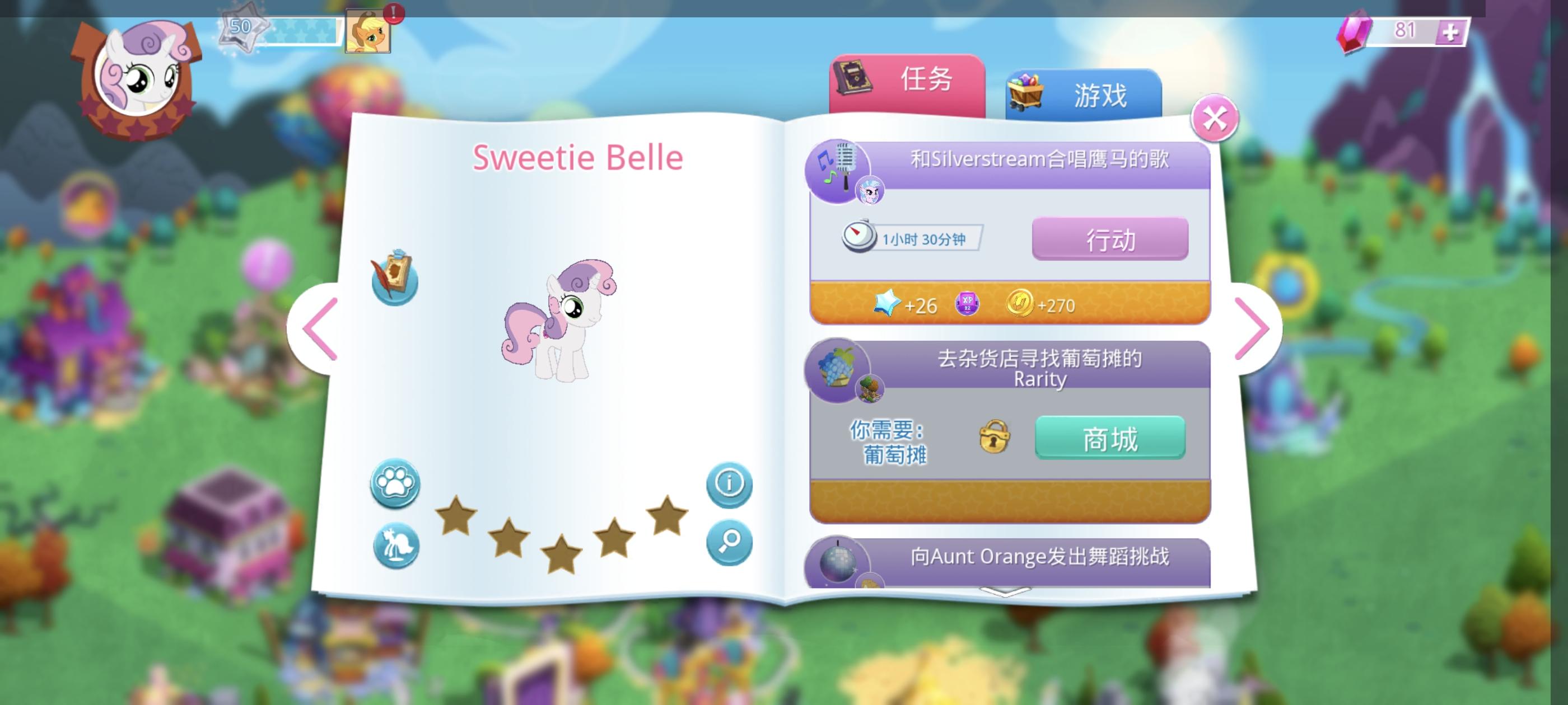 团队人数已够,任务的话没匹配小马,葡萄铺目前也没金币购买,只能让甜心贝尔现在闲置了,太浪费了,所有小马动起来,都给我做任务,赚金币!