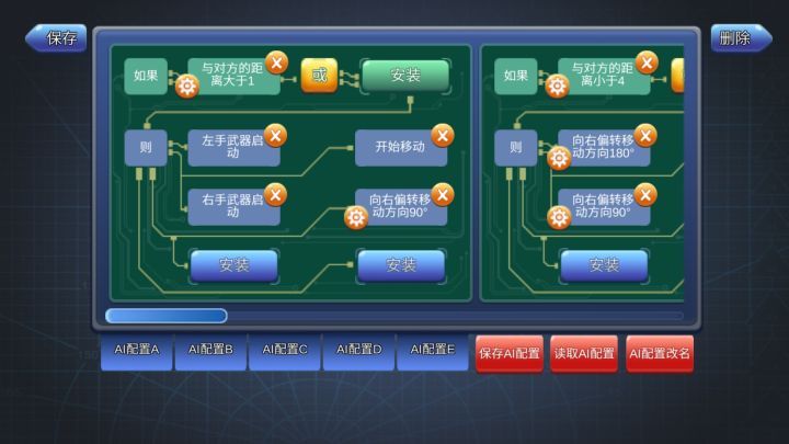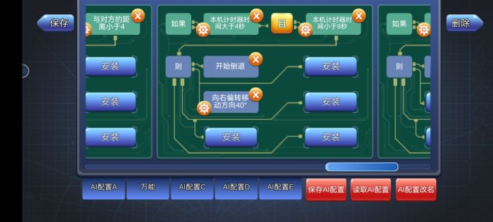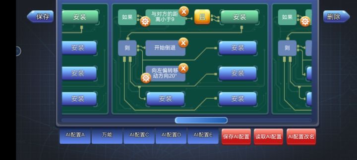 不知道它的AI是并列还是什么逻辑,总之教程时可行的系统,现在就不行了(不能执行了,二者只执行一个,教程时是一起执行)我的想法是让它在小于5的时候后退且偏转90度,大于0时一直偏转90度。希望哪位大佬能够指点一下*^_^*