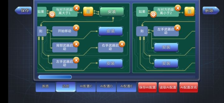 不知道它的AI是并列还是什么逻辑,总之教程时可行的系统,现在就不行了(不能执行了,二者只执行一个,教程时是一起执行)我的想法是让它在小于5的时候后退且偏转90度,大于0时一直偏转90度。希望哪位大佬能够指点一下*^_^*